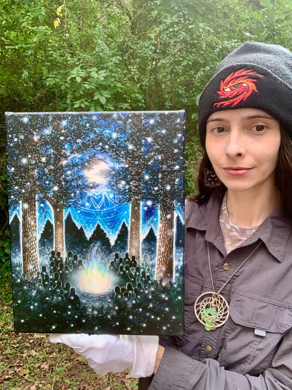 "Skywatchers" original painting, hand painted acrylic on 2' x 3' canvas, 2026